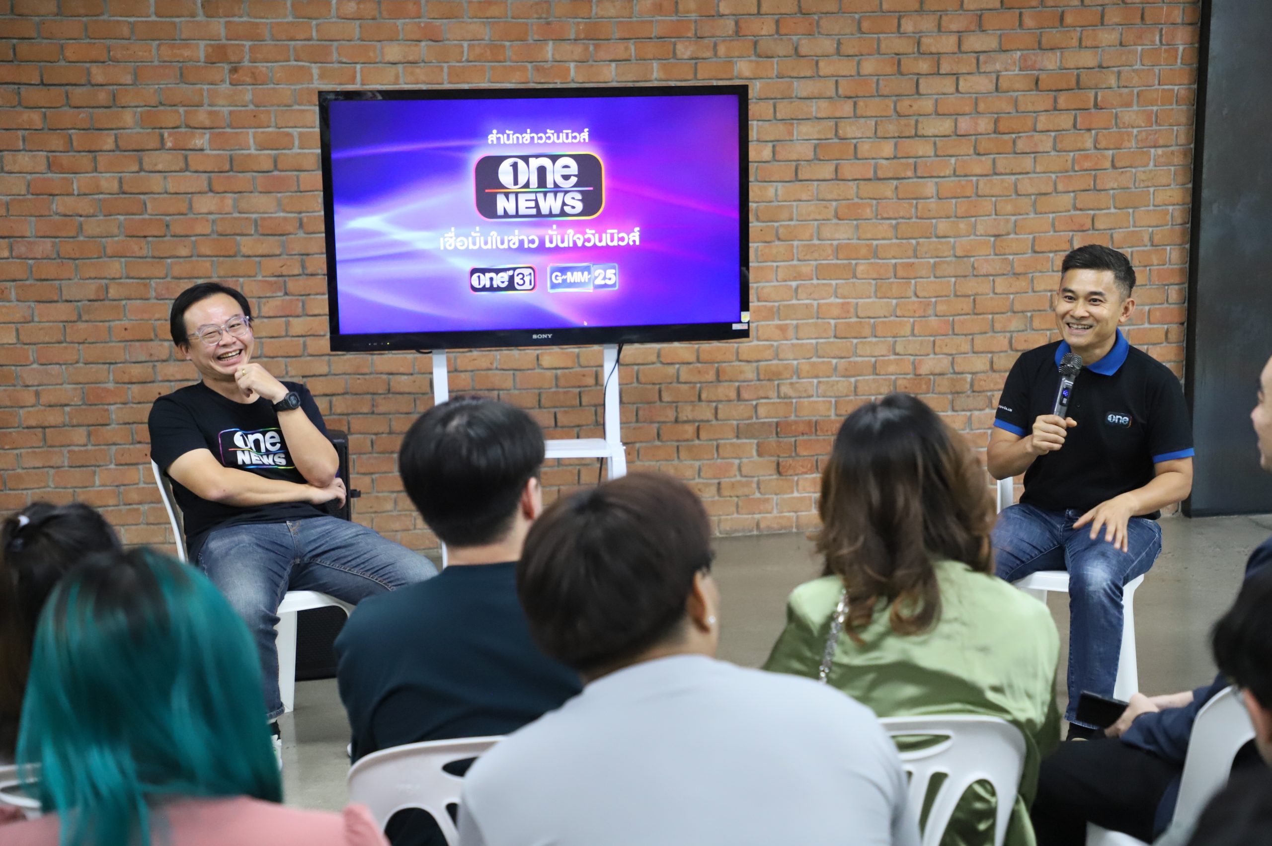 โดยมีพิธีกรข่าว โจ-อรชุน และ จ๊อย ญาณิน จาก สำนักข่าววันนิวส์ ปฏิบัติหน้าที่ขณะถ่ายทำ พร้อมด้วย คุณปรัชญา ชีพเจริญรัตน์ บรรณาธิการบริหารข่าวออนไลน์ ให้คำแนะนำการผลิตสื่อของสำนักข่าววันนิวส์ และแลกเปลี่ยนประสบการณ์วิชาชีพฯ ให้กับนักศึกษาที่มาศึกษาดูงาน ณ อาคารจีเอ็มเอ็ม แกรมมี่ เมื่อ 8 กรกฎาคม ที่ผ่านมา
