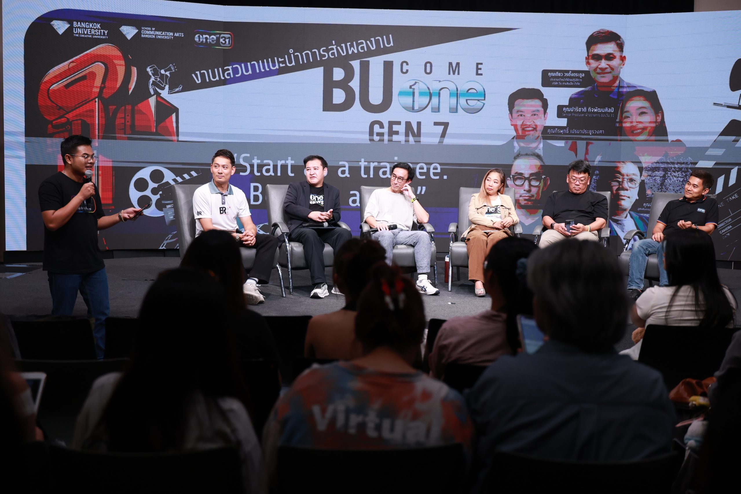 เส้นทางสู่โอกาสเกิดขึ้นอีกครั้ง สำหรับโครงการ “BU COME ONE GEN 7” กับหลักสูตรพิเศษสำหรับเหล่านักศึกษา มหาวิทยาลัยกรุงเทพ ที่ช่องวัน31 ได้จัดขึ้นเพื่อค้นหานักศึกษาที่มีความสามารถระดับมืออาชีพ พร้อมก้าวสู่การทำงานในสนามจริง ซึ่งการจัดงานเสวนาครั้งนี้เพื่อสร้างแรงบันดาลใจให้กับนักศึกษา ม.กรุงเทพ กว่า 100 คน ที่เข้าร่วม ณ สตูดิโอ 3 ตึกนิเทศศาสตร์ ม.กรุงเทพ รังสิต