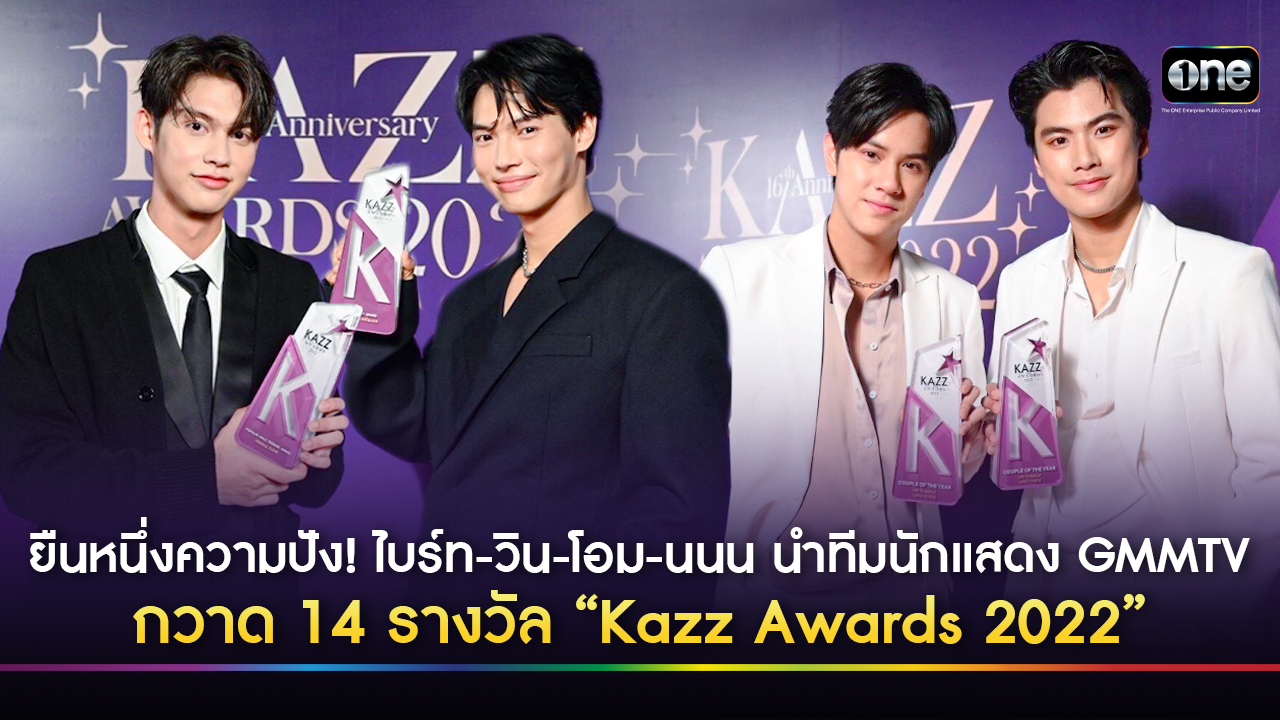 สุดปัง!! ไบร์ท-วิน-โอม-นนน นำทีมนักแสดง GMMTV กวาดสูงสุด 14 รางวัล “Kazz Awards 2022”
