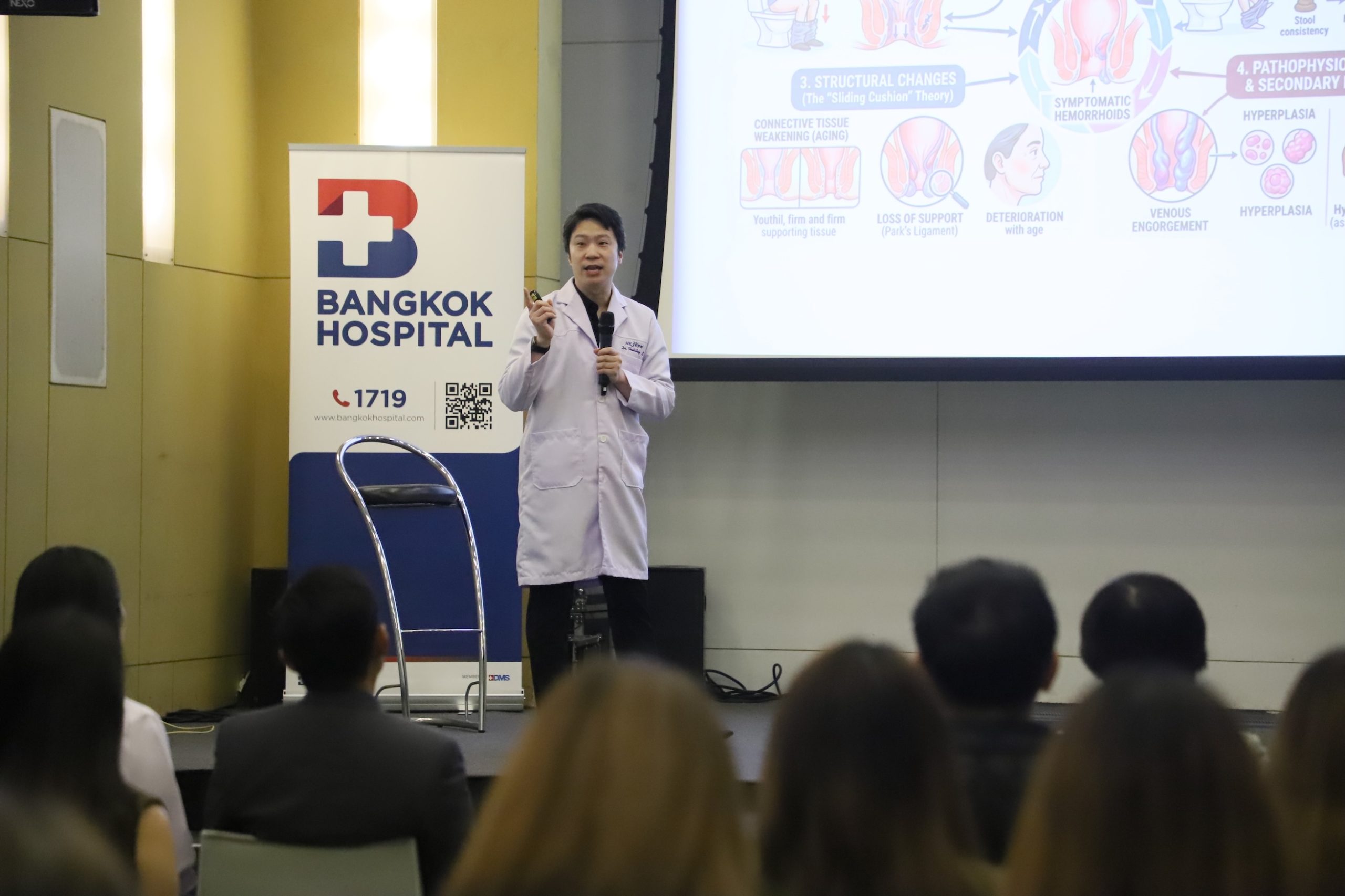 ซึ่งได้จัดให้มีการบรรยายในหัวข้อ “อย่าปล่อยให้ปัญหาที่ก้น ล้นมาที่ใจ..โรคริดสีดวงรักษาได้” โดย นพ.ฐิติเทพ ลิ้มวรพิทักษ์ ศัลยศาสตร์ลำไส้ใหญ่และวารหนักศูนย์ศัลยกรรม , คลินิกศัลยกรรมลำไส้ใหญ่และทวารหนัก รวมถึงหัวข้อบรรยายเรื่อง “ฝุ่นพิษ วิกฤตร้าย ทำลายปอด” โดย นพ.กุลชาติ เอกภูมิมาศ อายุรศาสตร์โรคระบบการหายใจและภาวะวิกฤตโรคระบบการหายใจ ศูนย์โรคปอดและระบบทางเดินหายใจ