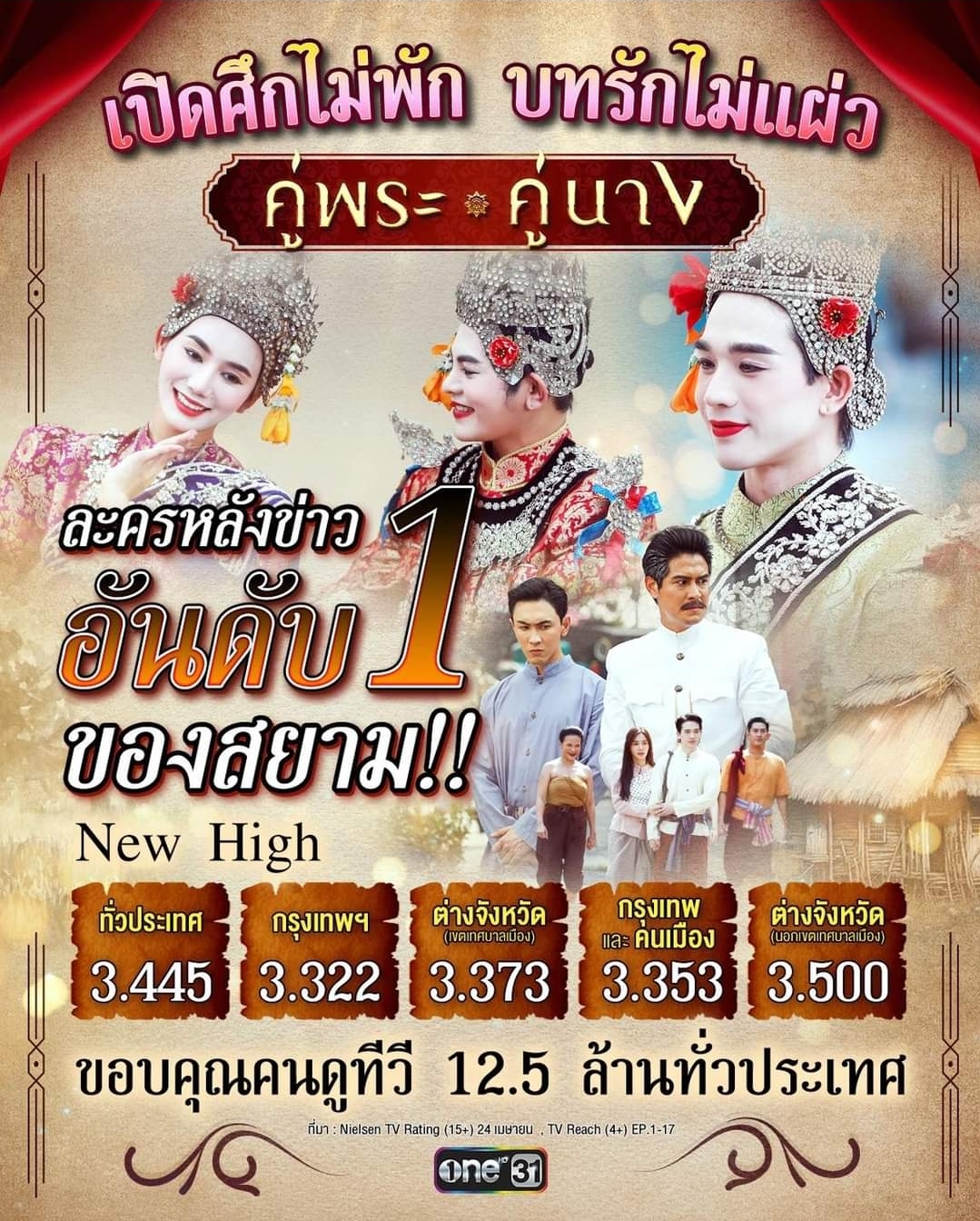 นอกจากนี้ยังมีละครหนึ่งทุ่ม เรื่อง “ดั่งธรณี” ที่ขึ้นแท่นเป็นอันดับ 1 ละครเย็น พร้อมยอดคนดูกว่า 5.5 ล้านคนบนทีวี และ 450,000 คน ที่ดูออนไลน์สูงสุด